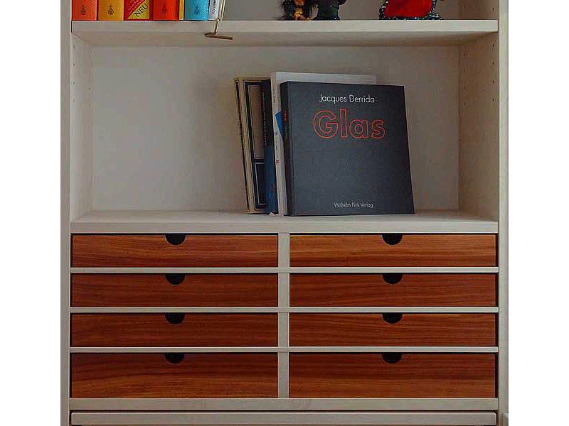 Bücherwand in Fichte 1-Schicht und Birne ⌕