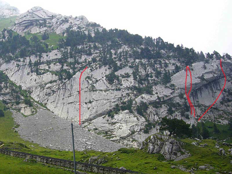 | einstieg: | von pilatus-kulm (oder von der lütholdsmatt via langenmatt/fräkmünt/laub) zu den chilchsteinen absteigen und linkshaltend zum tiefsten punkt der matthornvorbau-NE-wand | |