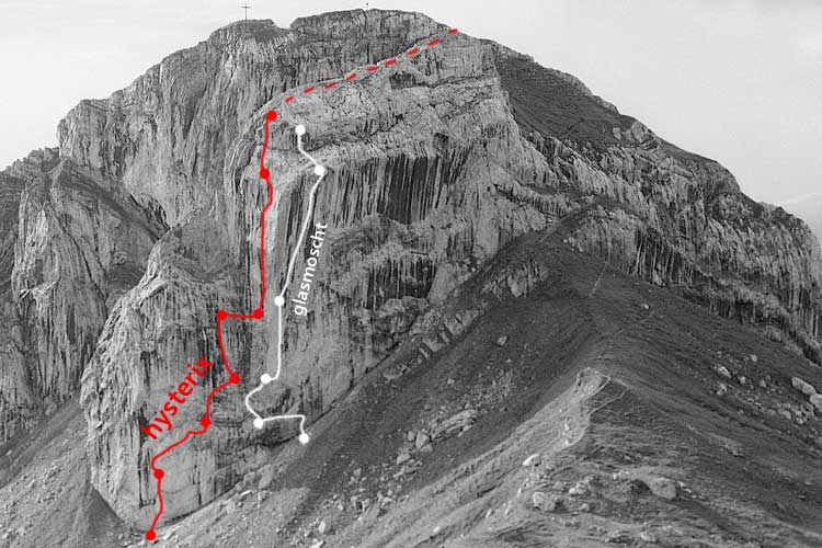 | besonderes: | da die zweitletzte seillänge vermutlich die schönste des ganzen gebietes ist, empfiehlt es sich, auch nach dem durchklettern von "glasmost" links zur hysterix zu queren und diese seillänge nach einem abseilmanöver anzugehen | |