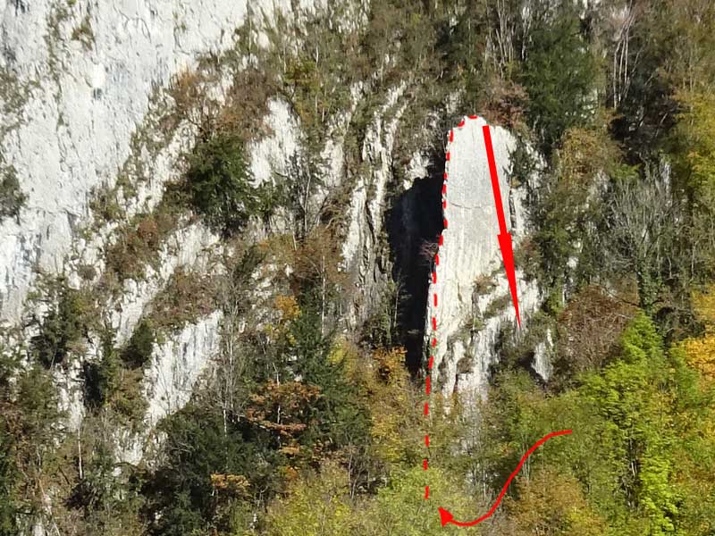 | einstieg: | zwischen ober und unter säge über den mühlebach und nun den linken waldrand empor ende der heuwiese führt ein fixseil zum einstieg an der kante | |