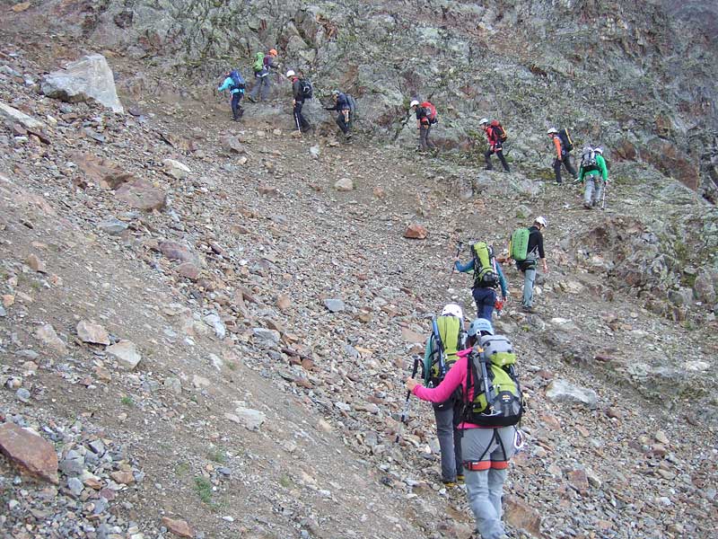 wieder über den grat absteigen und über den üssre baltschiedergletscher zur baltschiederklause (2783m).