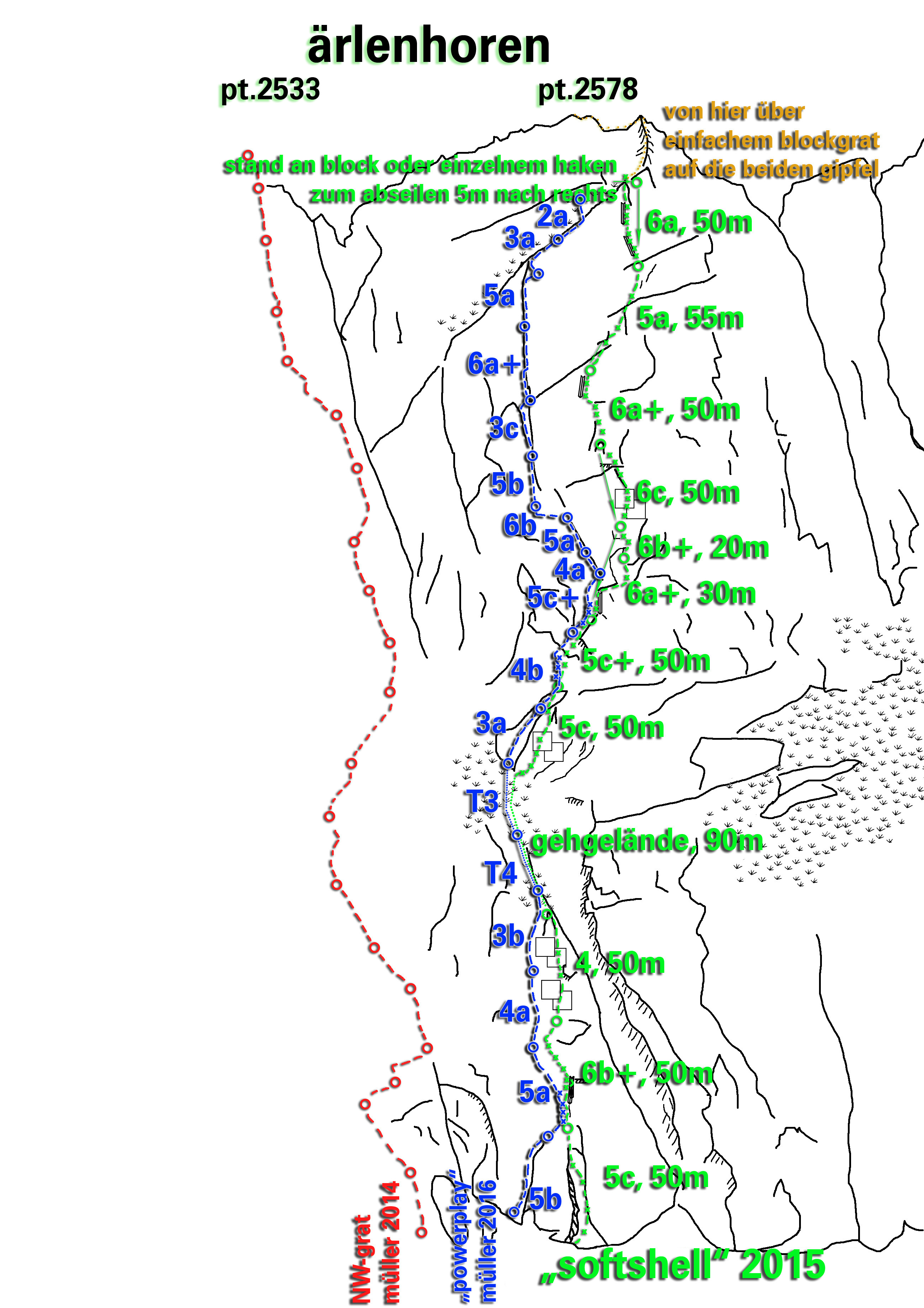 ärlenhoren nordwestwand: die von uns erstbegangene route "softshell"