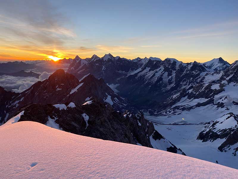 blüemlisalp überschreitung E-W: morgenspektakel mit blick richtung berner alpen