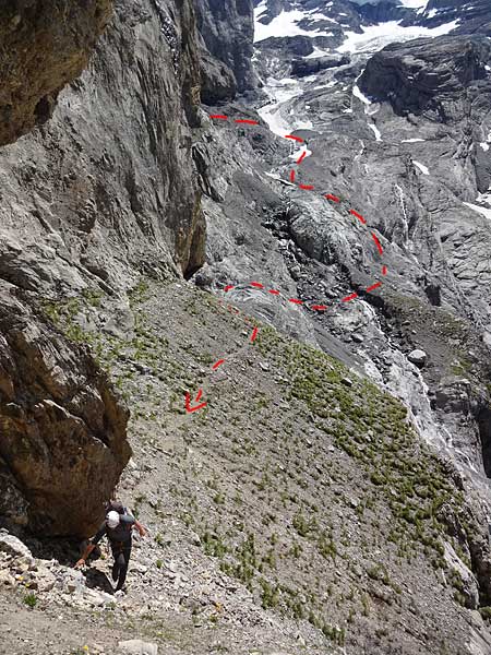 fründenschnuer: beim abstieg vom rottalsattel zur fründenschnuer unbedingt auf das band unter den felswänden aufsteigen