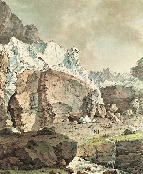 grindelwaldgletscher: so sah johann ludwig aberli im 18ten jahrhundert die zunge des gletschers!