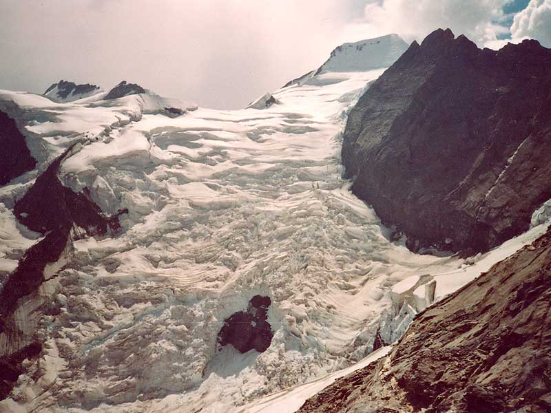 aufstieg über's challi: im jahre 2018 gäbe es mangels eis keine möglichkeit mehr, den fluss zu überqueren!