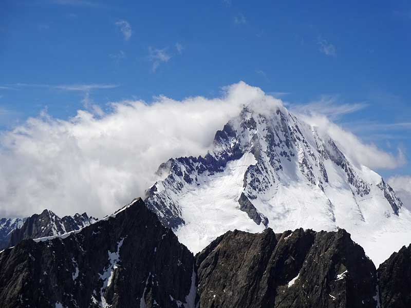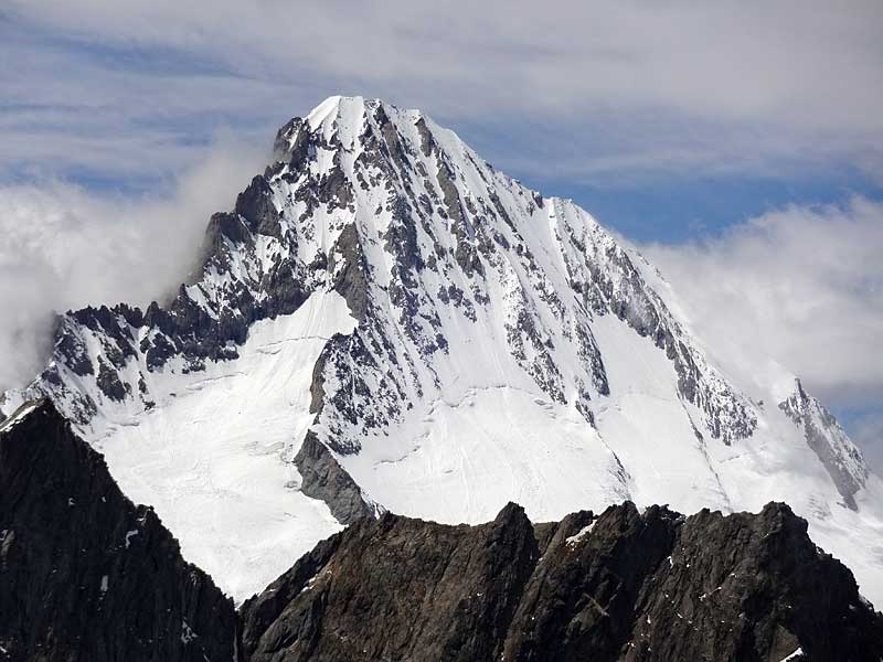 grisighorn südgrat: linkerhand grüsst das stolze bietschhorn mit dem SE-grat links und dem E-sporn in der mitte