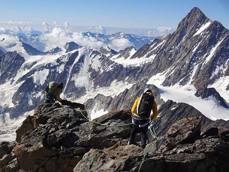 lauteraarhorn (SSW-couloir und SE-grat, abstieg schraubengang): auf dem wunderschönen gipfelgrat zum lauteraarhorn