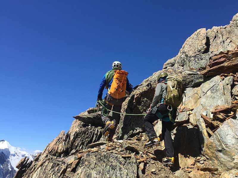 material: 30m-seil, schlingen / für den abstieg über den SW-grat: 50m-seil