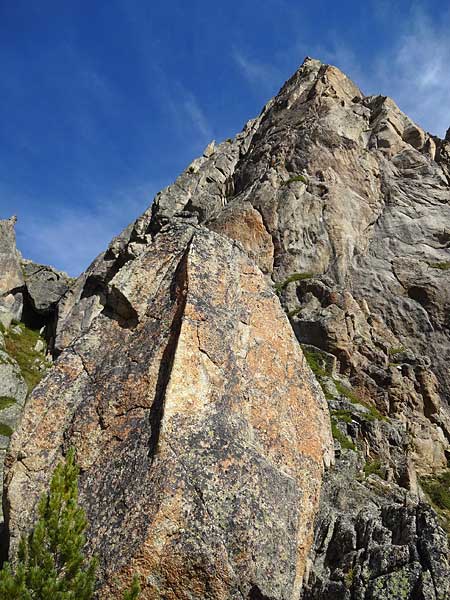 six carro SSW-grat: da der fels doch ordentlich flechten aufweist, sollte man nach regenwetter zwei tage zuwarten (©rl)