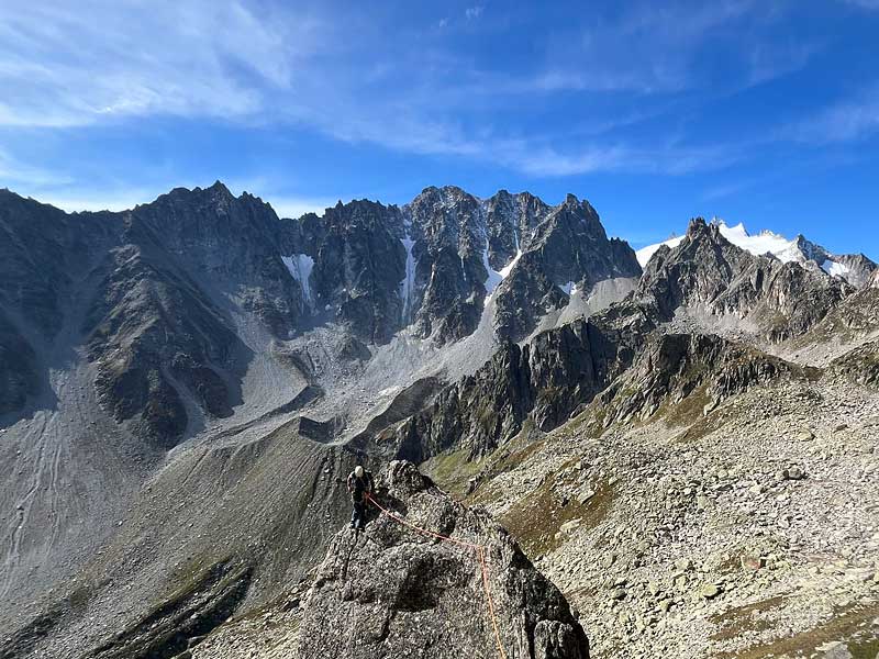 six carro SSW-grat: im hintergrund grüssen die aguilles d'arpette sowie die arête des écandies vor dem plateau du trient (©rl)