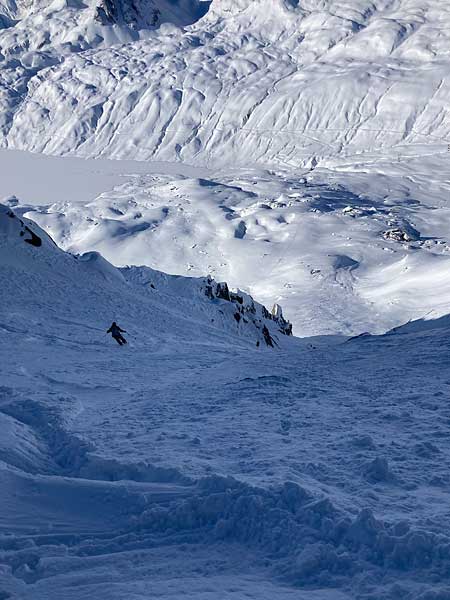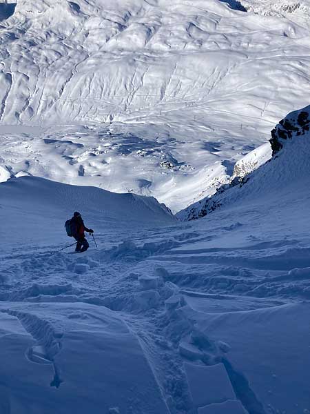 marchhorn WNW-couloir (skitour): unten wieder fantastische hänge mit bestem pulver