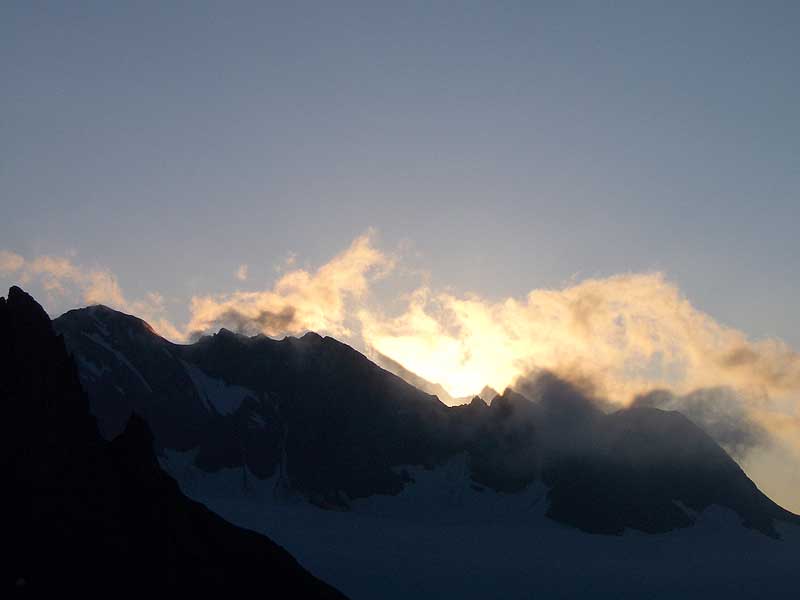 bocktschingelgrat (gross schärhorn): frühmorgens auf dem hüfifirn