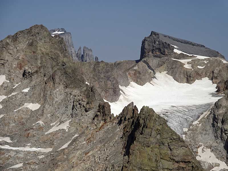 überschreitung miesplanggenstock S-N: blick zu den falkentürmen und zum chli spannort