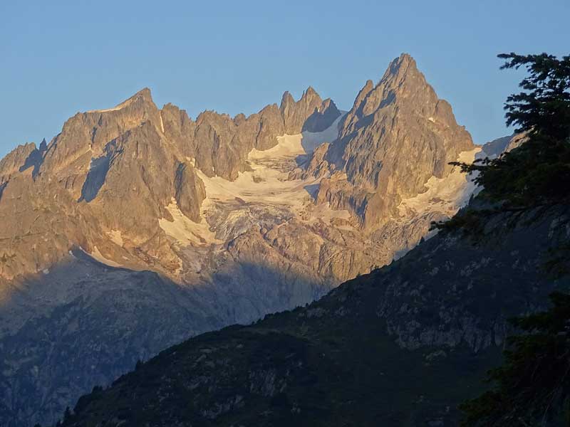 seewenhorn ostgrat: sustenlochspitz, fünffingerstöcke und wendenhorn grüssen im morgenlicht