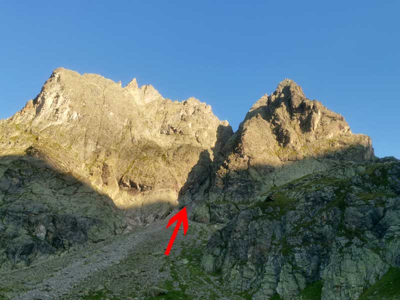 seewenhorn ostgrat: seewenhorn und plattenburg, dazwischen der einstieg links des couloirs (©sbu)