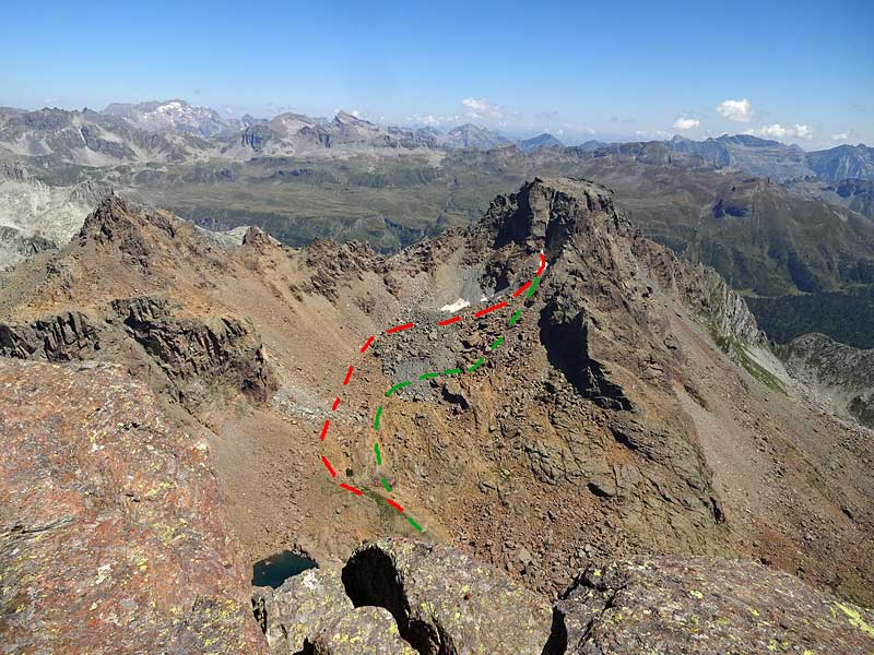 pizzo crampiolo sud westwand: im aufsteig wählten wir die rote, im abstieg die grüne linie (welche deutlich angenehmer zu gehen war)