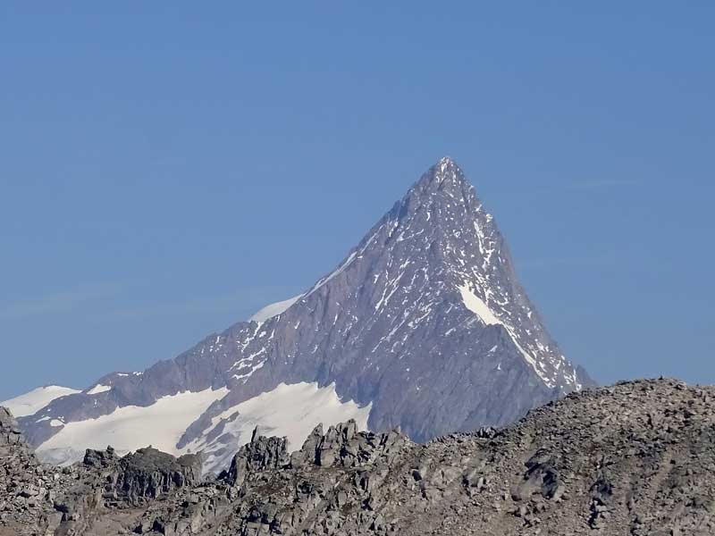 pizzo crampiolo sud westwand: das schwarzhorn (punta marani) erinnert von der silhouette her an das matterhorn