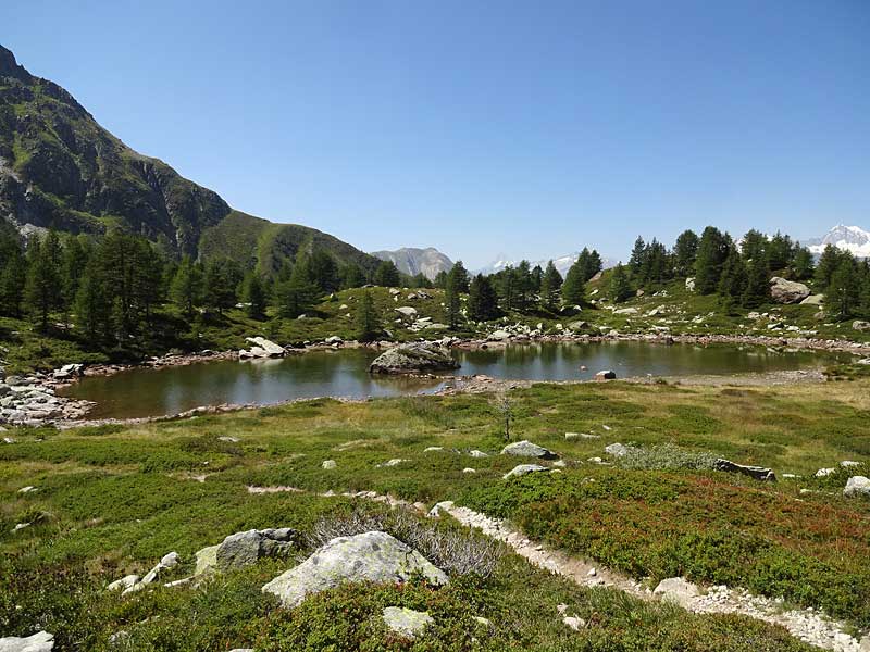 pizzo crampiolo sud westwand: im abstieg leisten wir uns den kleinen umweg über den mässersee. hier wächst das sehr seltene see-brachsenkraut