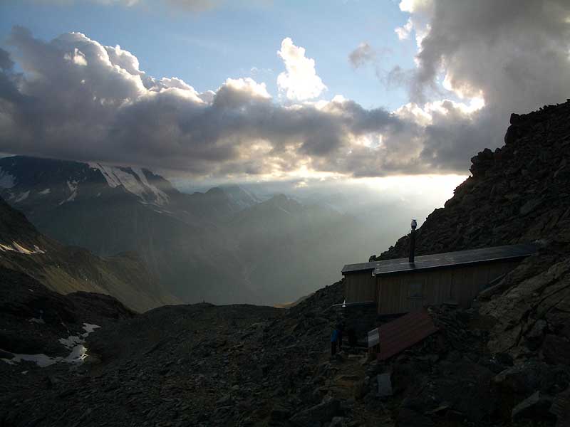 fletschhorn NNW-grat: abendstimmung bei der fletschhornhütte
