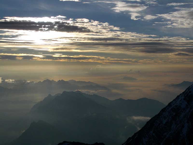 fletschhorn NNW-grat: sonnenaufgang über dem breitloibgrat