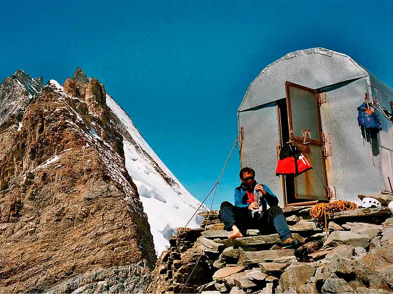 geplant ist der ostgrat der dent d'hérens, doch da wir die verhältnisse falsch eingeschätzt haben und daher mit absolut ungenügendem material unterwegs sind, sind wir nach überschreitung des furgggrates im wunderschönen und sehr selten besuchten bivacco novella (das bivacco benedetti im colle tournanche ist nicht mehr brauchbar!) gestrandet. wie kommt man nun am schnellsten in die schweiz zurück? die überschreitung des matterhornes ist wohl die direkteste und effektivste linie...
