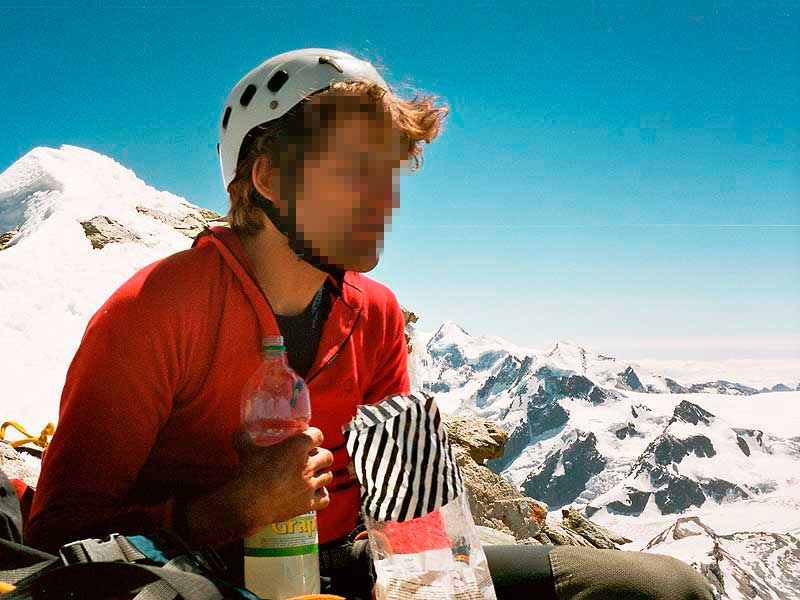 dank der argen beschädigung des rifugio carrels durch steinschlag im heissen sommer 2003 ist das übernachten in dieser hütte verboten. bauarbeiter sind einquartiert, um das rifugio wieder instandzustellen. daher haben wir den ganzen liongrat, der sich zudem in besten verhältnissen präsentiert, beinahe ganz alleine für uns! nur eine einzige seilschaft, die mit schlafsäcken in der hütte übernachtet hatte, überholen wir schon bald einmal. nachher geniessen wir absolute einsamkeit an dem ansonsten äusserst häufig begangenen italienergrat