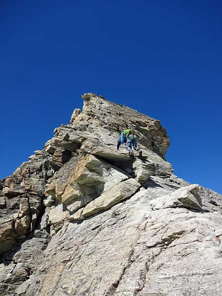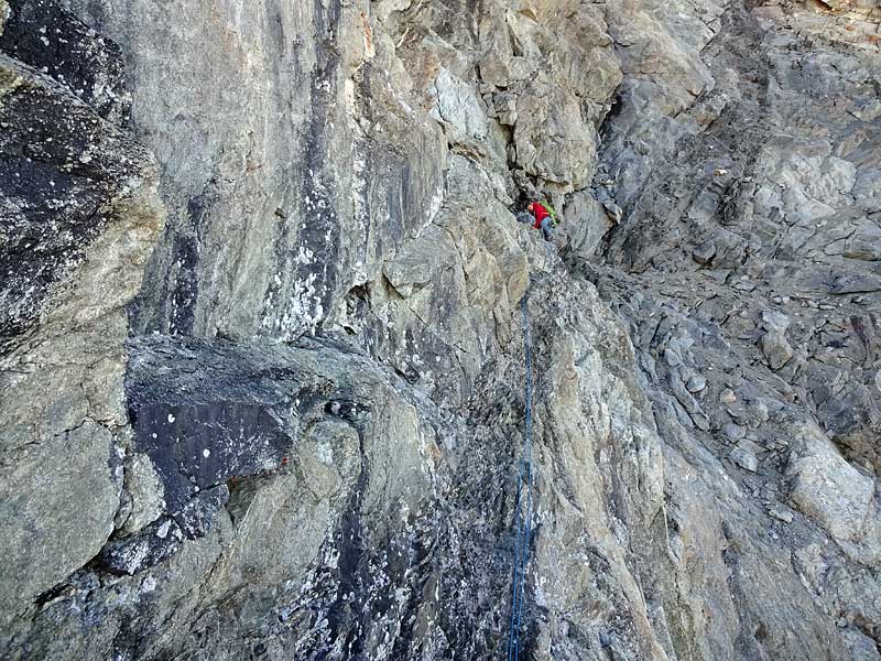 ober gabelhorn: abklettern über den zu beginn sehr kompakten fels der wellenkuppe
