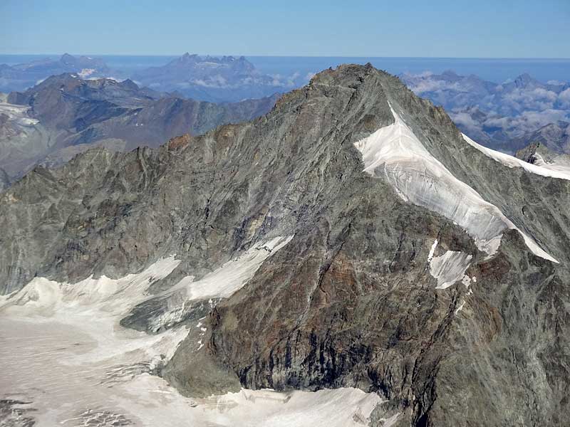 ober gabelhorn südwand: matterhorn mit hörnligrat, links davon der langgezogene furgggrat