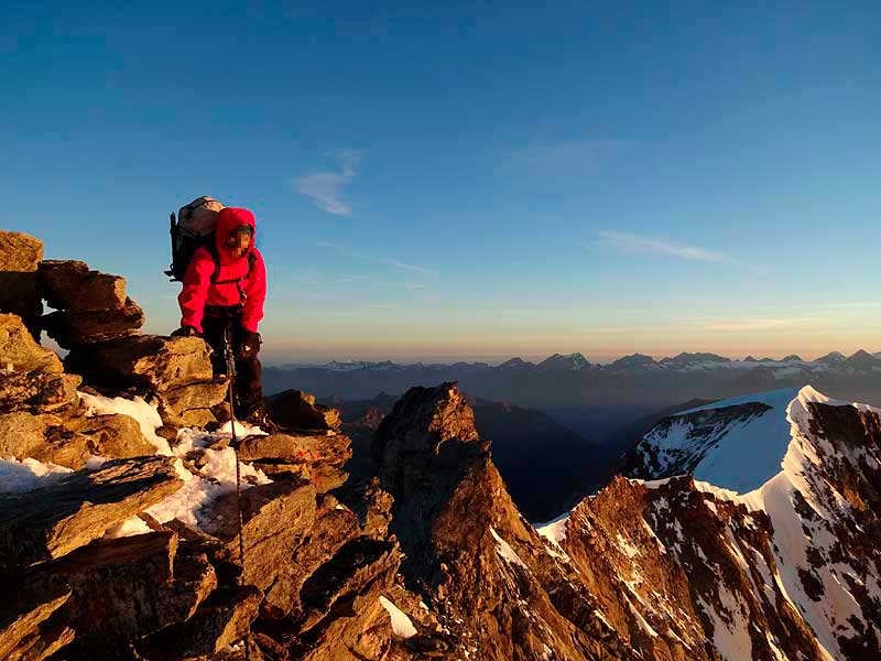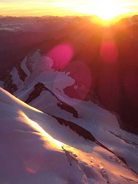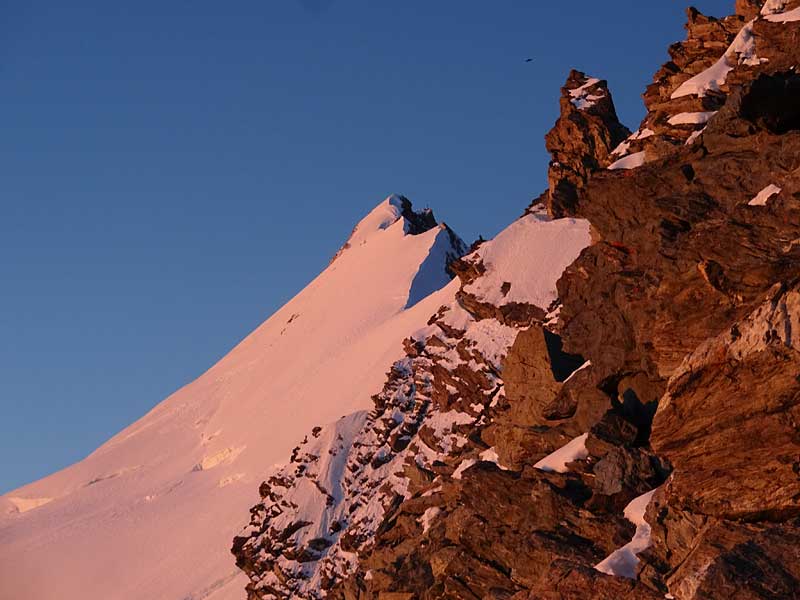 weisshorn nordgrat: auch das weisshorn wird rot angeleuchtet