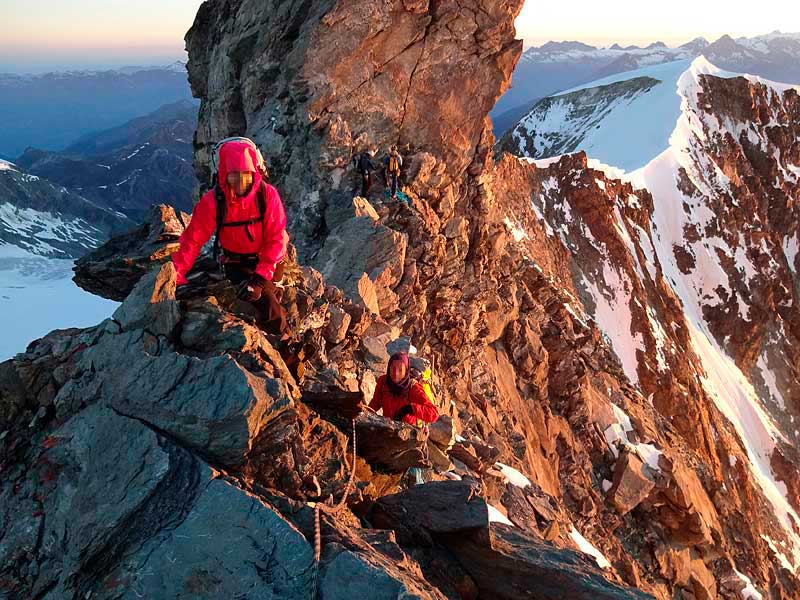 weisshorn nordgrat: der schöne firngrat im ersten morgenlicht