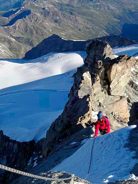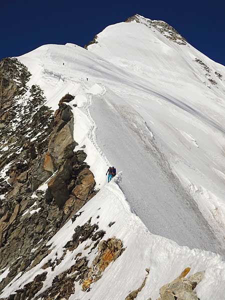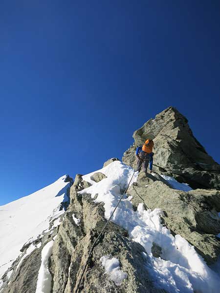 weisshorn nordgrat: fels- und firnpartien wechseln sich ab