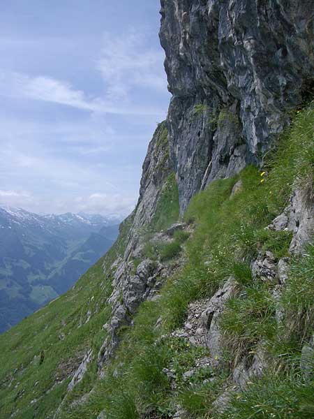 hinter den hütten bei pt. 1123 beginnt der steile und teilweise sehr ausgesetzte wildheuer-weg, der auf den hinter heubrig führt.